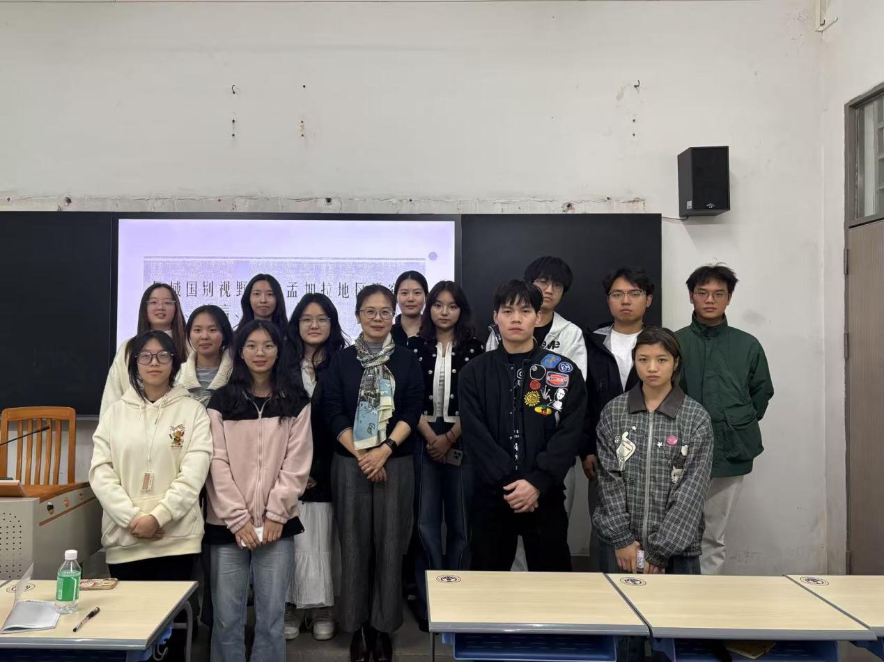 讲座尾声,现场师生就“孟加拉国旅游资源开发中的文化保护”、“宗教语境下的女性赋权研究路径”、“地缘政治格局中的孟加拉国战略选择”以及“人工智能时代小语种教育的应对策略”等提出问题,曾琼教授逐一进行耐心解答互动。她鼓励孟加拉语师生打破学科壁垒,在区域国别研究中构建复合型知识体系,为南亚研究领域注入创新活力。