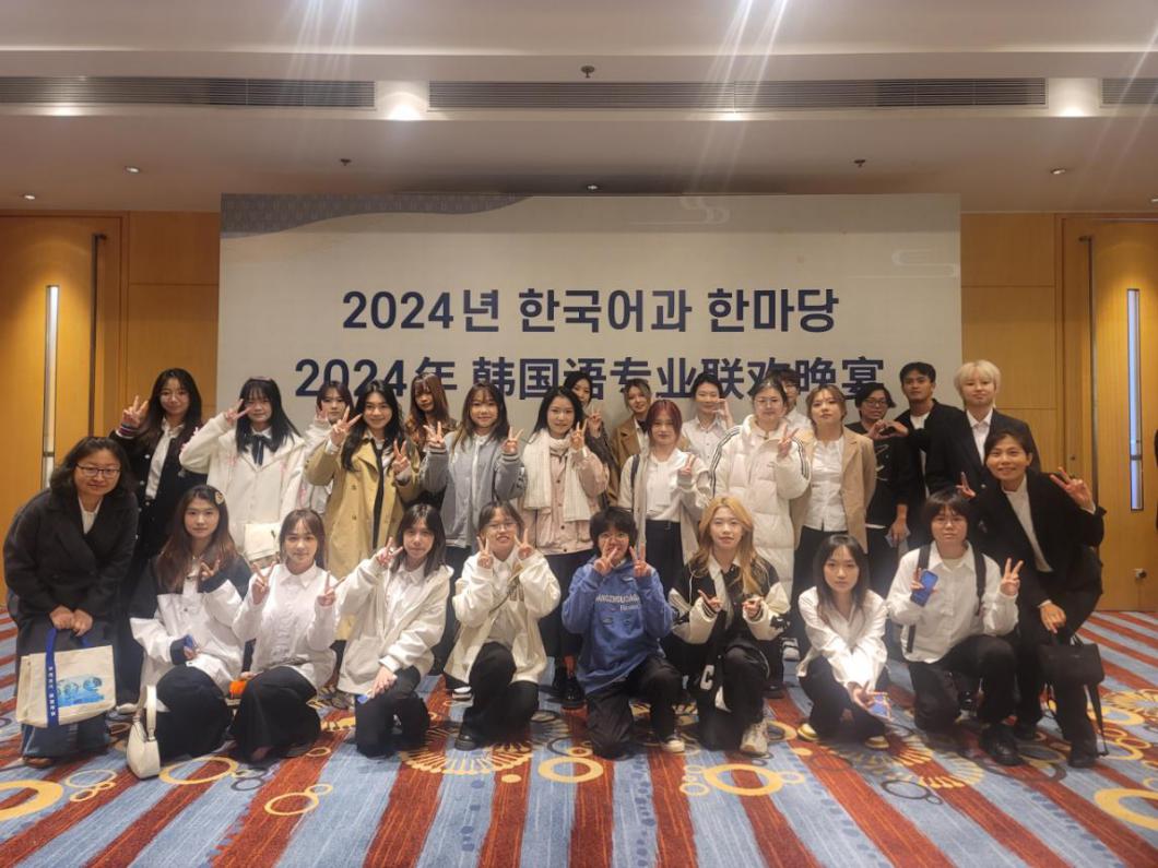 11月30日晚,应韩国驻广州领事馆邀请,朝鲜语系2023级员工由朝鲜语系教师李楠、外籍教师裴允卿带队,参加了在广州万豪酒店举办的“2024年 韩国语专业联欢晚宴”。