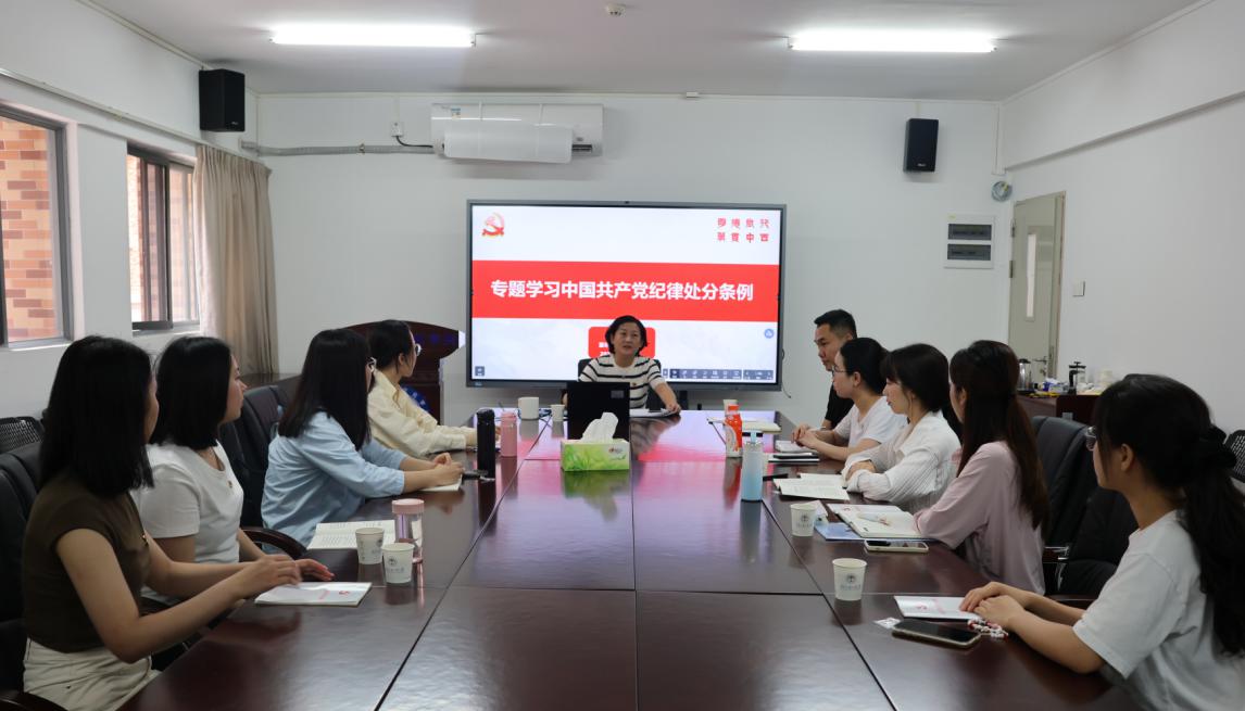 会议第一部分由党委书记梁洁导学新修订《中国共产党纪律处分条例》。梁洁书记强调,对于管党治党的重要基础性法规,员工党员特别是研究生党员必须以身作则,切实认真学习理解《条例》,准确把握《条例》的内涵要义和实践要求。