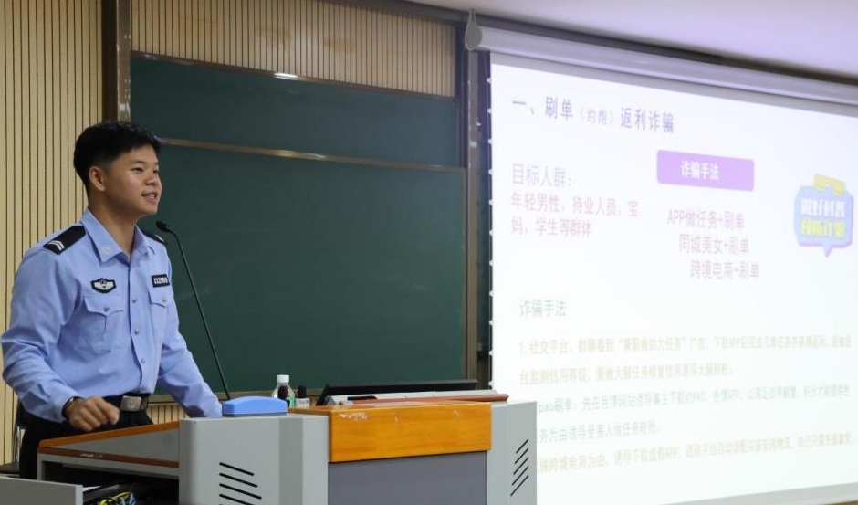 在讲解过程中,汤警官列举了大量亲身侦办的真实案例,通过以案释法的生动形式,让在场师生深刻认识到诈骗行为对受害人造成的严重财产损失和心理伤害。汤警官强调,反诈工作绝非一人之力可完成,呼吁全体师生牢固树立反诈意识,时刻保持警惕,并积极投身反诈宣传工作,做到“自身防骗不松懈,身边宣传不停歇”,共同为校园安全筑牢坚实防线。