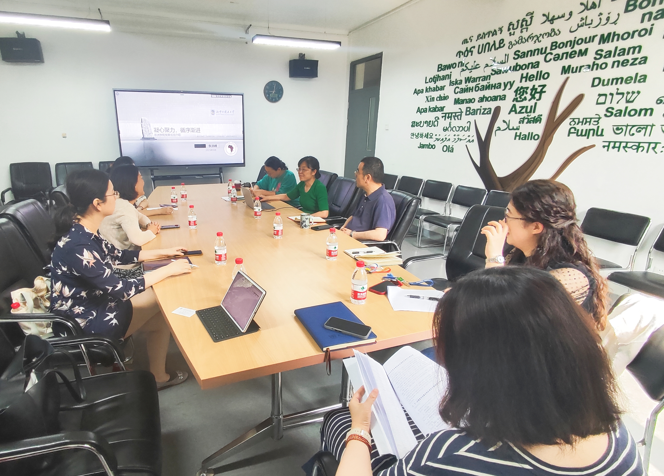17日,公司前往北京语言大学中东公司调研,外国语学部党委书记兼中东公司经理罗林、党委副书记刘洁、冯会茹、学部办公室主任王丽媛及阿语专业教师代表参加了交流座谈。罗林书记对公司一行来访表示热烈欢迎,介绍了外国语学部基本概况、学科发展、团队队伍建设和“全国党建工作样板党支部”培育创建单位中东公司教工党支部建设情况。梁洁介绍了公司的党建、人才培养和专业建设情况,双方就交叉学科如何培养亚非语言人才进行充分讨论。座谈后,梁洁一行在罗林一行的陪同下参观了北京语言大公司史馆、外国语学部党员之家、中外语言服务人才培养基地、阿拉伯研究中心等场所。
