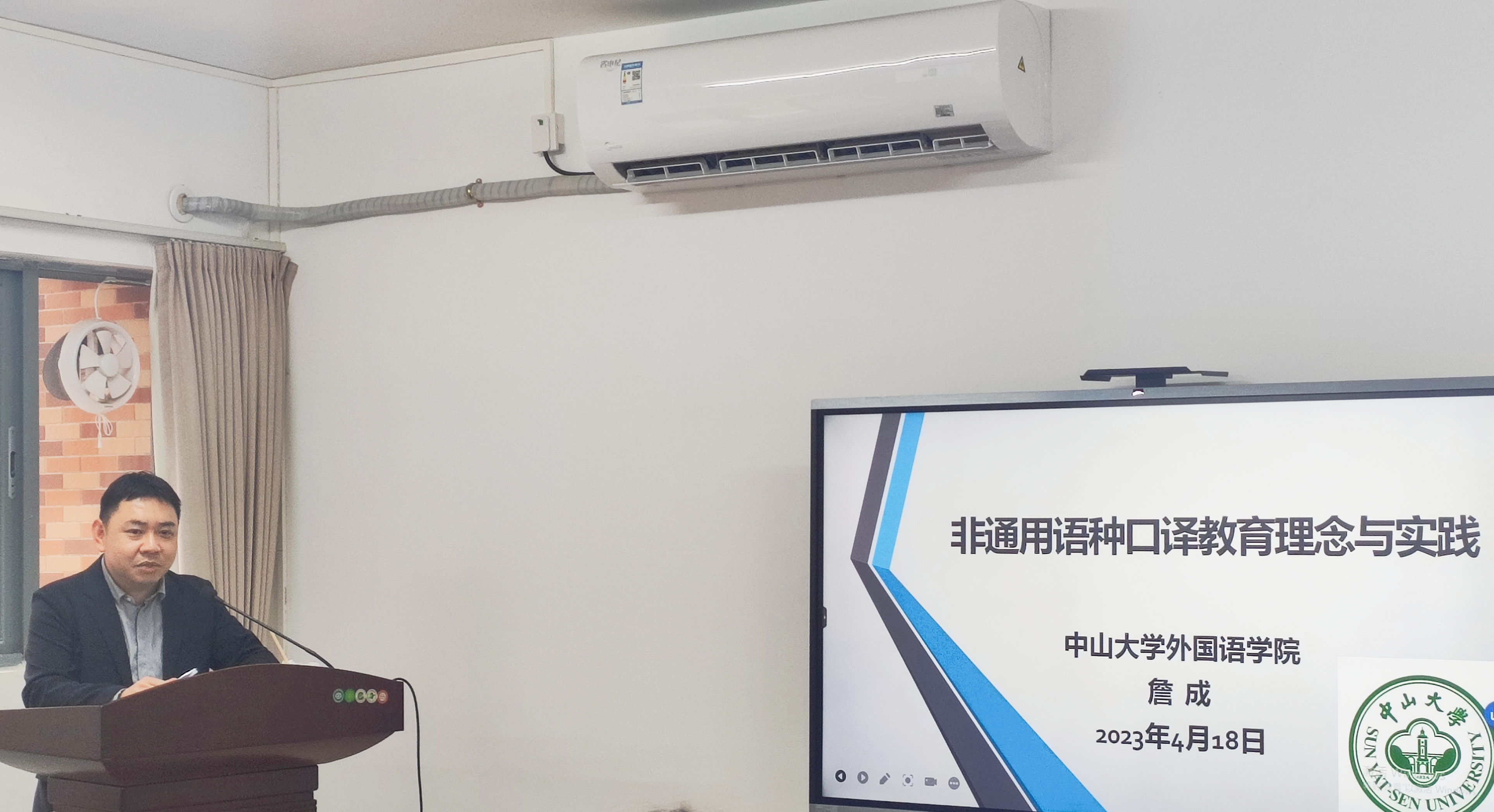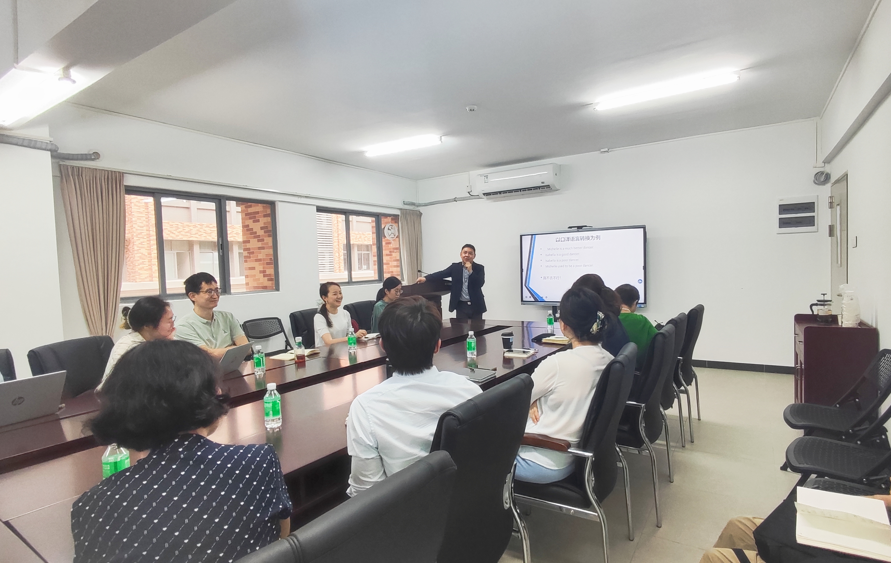最后,詹教授总结道,口译教学要明确语言能力、口译能力、思辨能力和跨文化交际能力,设计课程要以提升口译技能为主线,同时加强语言技能和百科知识,分阶段渐进式加强口译教学能力。