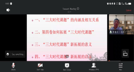 学习会上,宋善文教授以“对‘三大时代课题’的新拓展”为主题,带领大家系统学习了《习近平谈治国理政》第四卷。讲解内容包括“三大时代课题”的内涵及相互关系、第四卷如何拓展“三大时代课题”、“三大时代课题”新拓展的意义、“三大时代课题”新拓展的启示四部分。