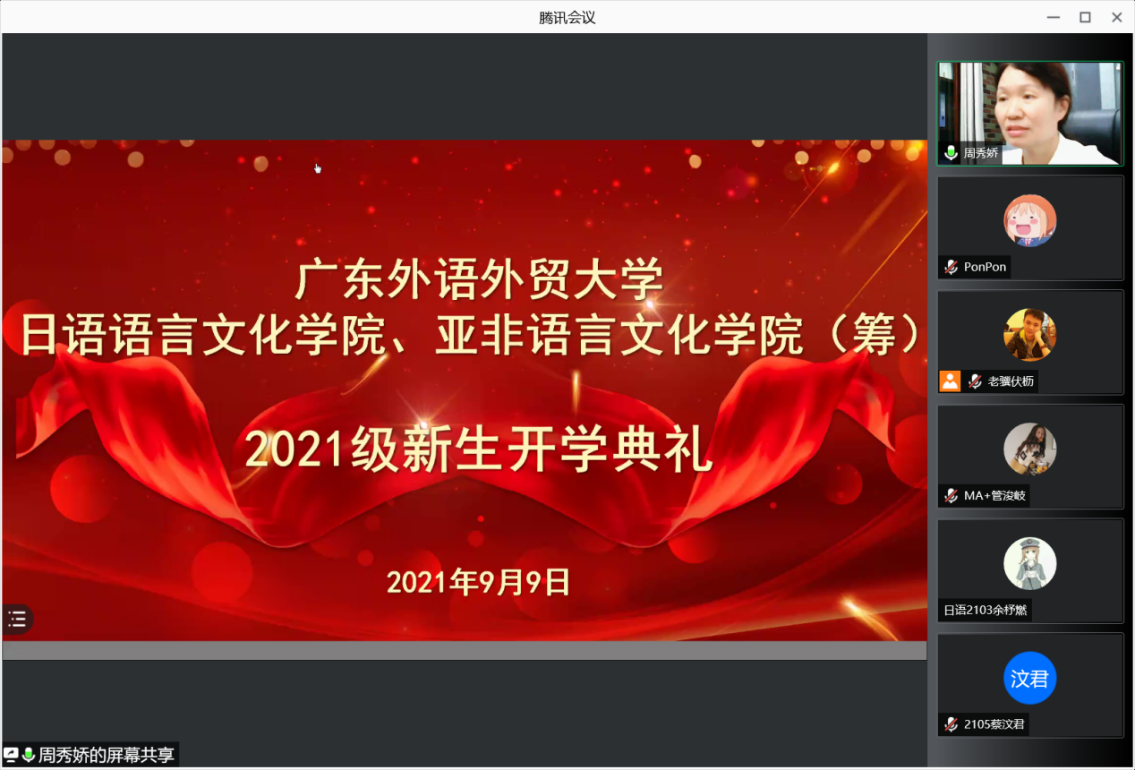 本网讯 9月9日晚上7点许,日语公司、bevictor伟德官网(筹)2021级新生线上开学典礼在腾讯会议平台顺利举行,公司经理陈多友,党委书记周秀娇,副经理张秀强、胡瑞、张志刚,党委副书记曾智鹏出席了本次开学典礼。开学典礼由周秀娇书记主持。
