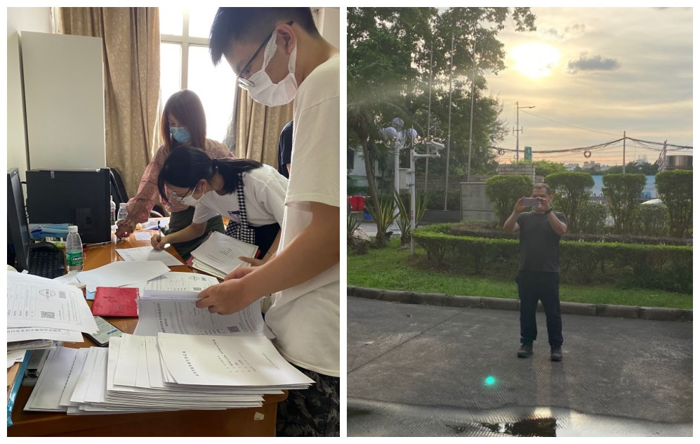 在听闻因疫情原因公司开展毕业生返校工作人手不足亟待支援时,公司日语语言文学研究生第一党支部胡晓萱和朱苗苗、日语语言文学研究生第二党支部的余浩荣和唐劲,这四位身在广东的员工党员毫不犹豫报名参加了党员志愿服务队。其中余浩荣同学家住东莞,天刚亮就出门去乘坐前往广州的动车,一路奔波,只为准时赶到公司做好毕业生返校各项准备工作。