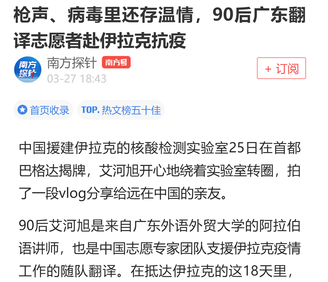 南方Plus:枪声、病毒里还存温情,90后广东翻译志愿者赴伊拉克抗疫