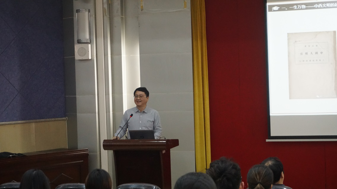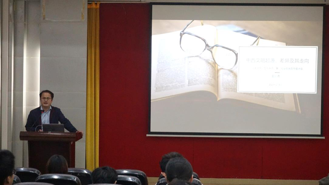 本次讲座分为三部分:“一生万物——中西文明的起源”、“花开两枝——中西文明的差异”与“殊途同归——中西文明的走向”。袁长青认为,早期人类文明同源同宗,现代智人的迁徙通道即是人类早年文明的传播过程。他谈到,早期人类文明虽演变成东方的农耕文明与西方的工商业文明,但最终会归为一体,这就是中西文明的走向。讲座内容充实丰富,激发同学们对中西文明的探究兴趣,开拓了同学们的学术视野。