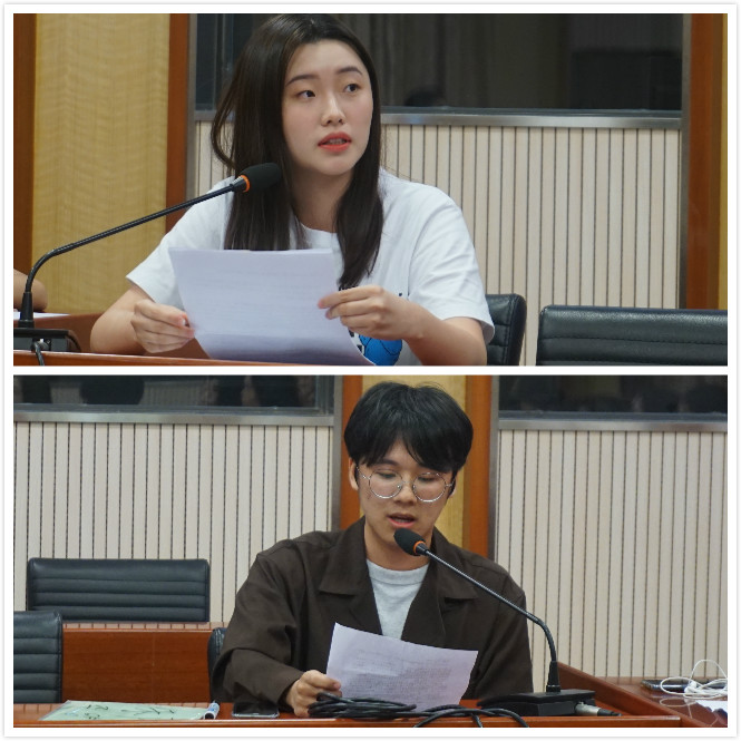 亚洲校园18级员工代表刘靖(上图)、朱阳珂(下图)发言