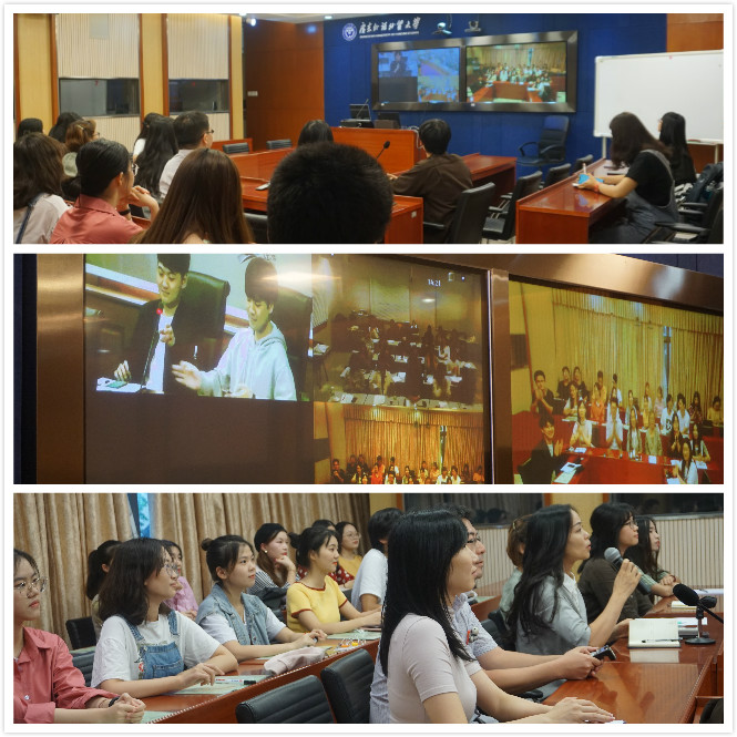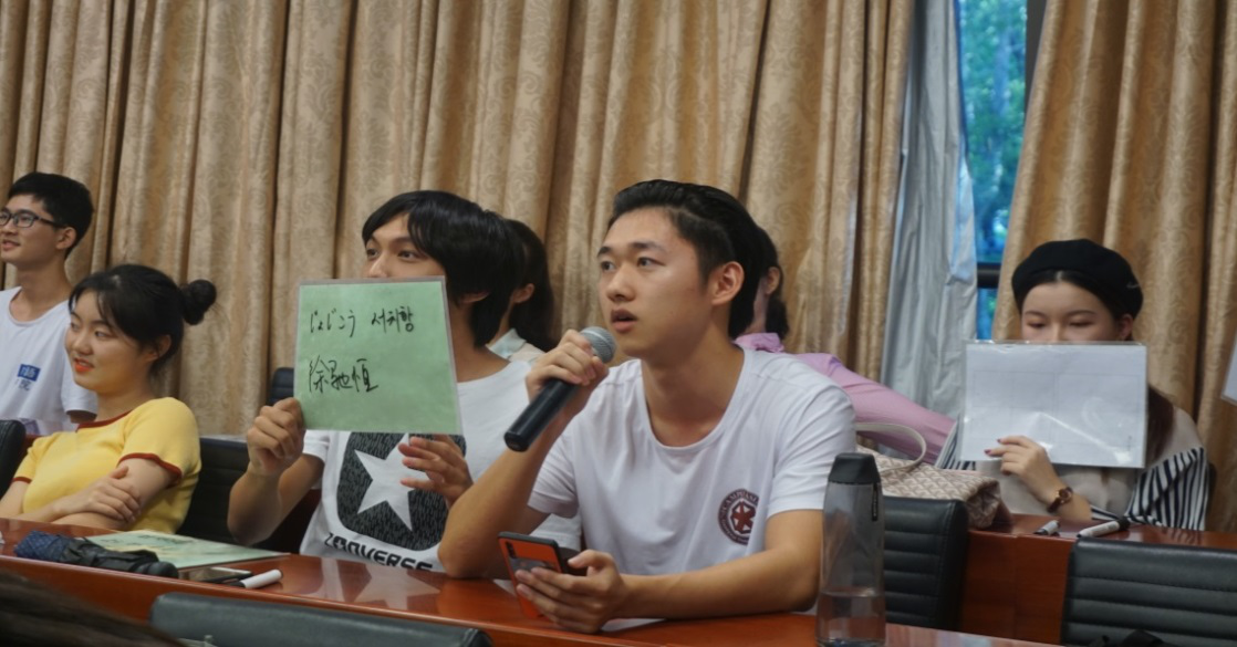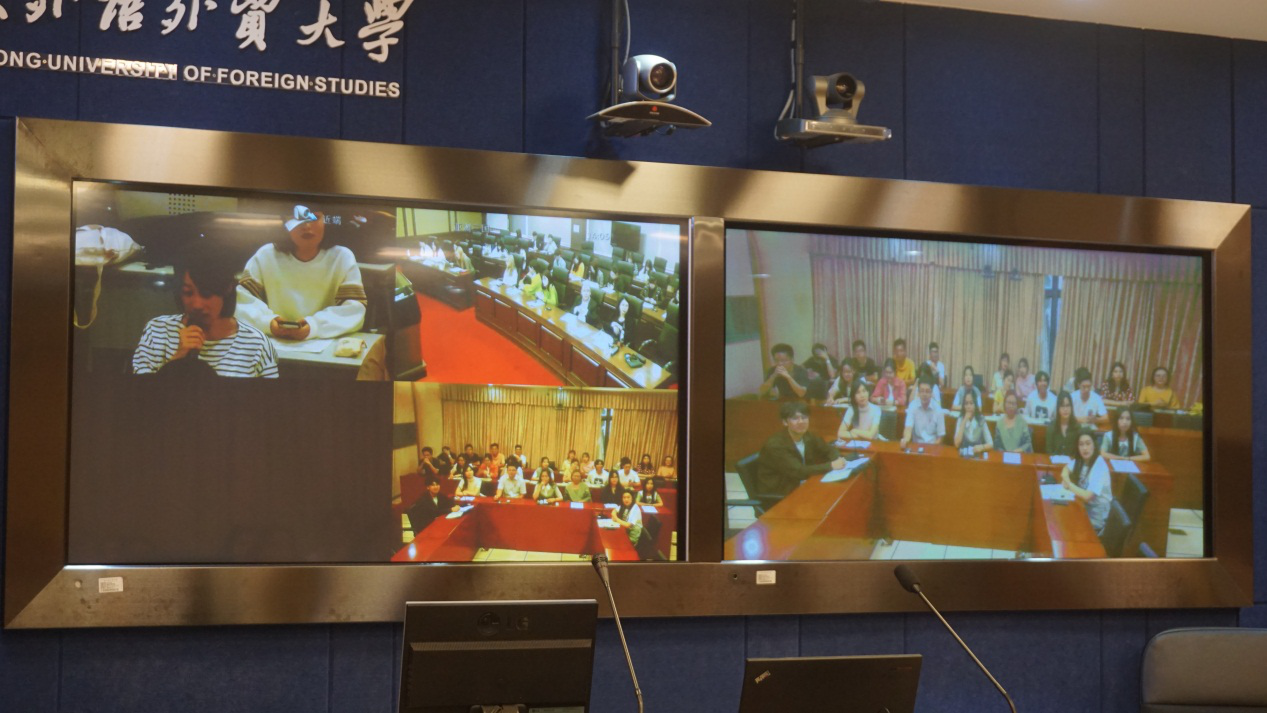 结团式正式开始前,2018级亚洲校园的同学和老师们均按时就坐,期待着与日韩两国的员工和老师进行远程见面与交流。中日韩亚洲校园三国结团式于北京时间三点三十分正式开始,各国老师首先进行了简单的交流。随后,各国员工用母语之外的两国语言进行自我介绍。员工们纷纷表示,他们很喜欢对象国的文化,渴望进一步了解另外两个国家,并且很期待与大家的见面。各国员工们热情开朗,现场氛围活泼有趣。