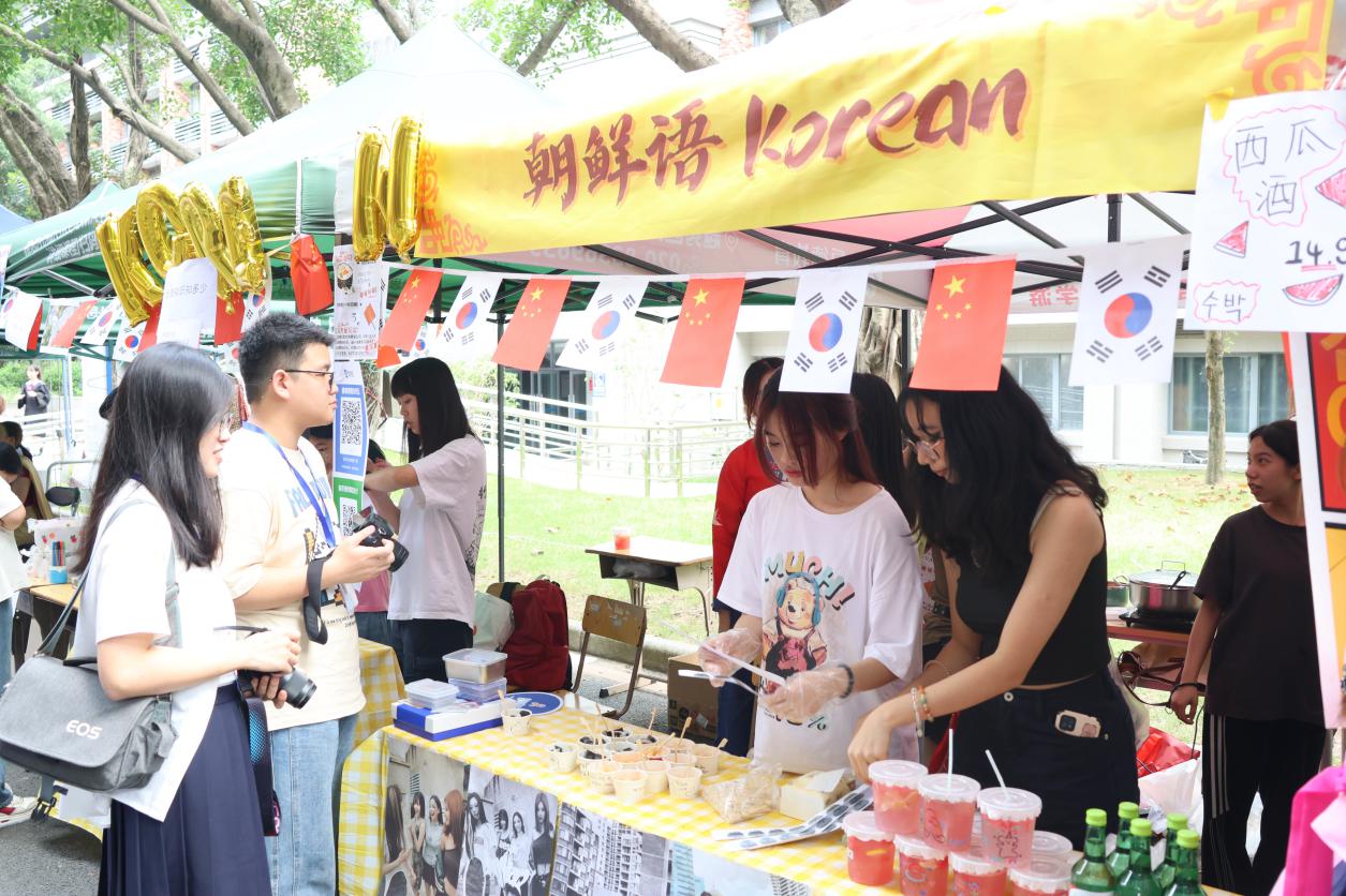 美食集市上,各语系员工身穿对象国的特色服饰,在摊位上精心准备对象国的经典美食,吸引来客前来品尝。有来自阿拉伯的沙瓦玛卷饼,伊朗的藏红花鸡汤,朝鲜族的辣炒年糕,坦桑尼亚的羊肉抓饭,土耳其的米布丁,巴基斯坦的灌汤脆球,希伯来语的法拉费丸子,印度的咖喱料理,孟加拉国的特色小吃拼盘等不同地域的美食。此外本次文化节还联合了中国文化摊位,共同欣赏中文书法,感受中华美食。不同的美食风味营造出文化碰撞的愉悦氛围,参与者沉浸在多元文化之中,领略不同文化的魅力。