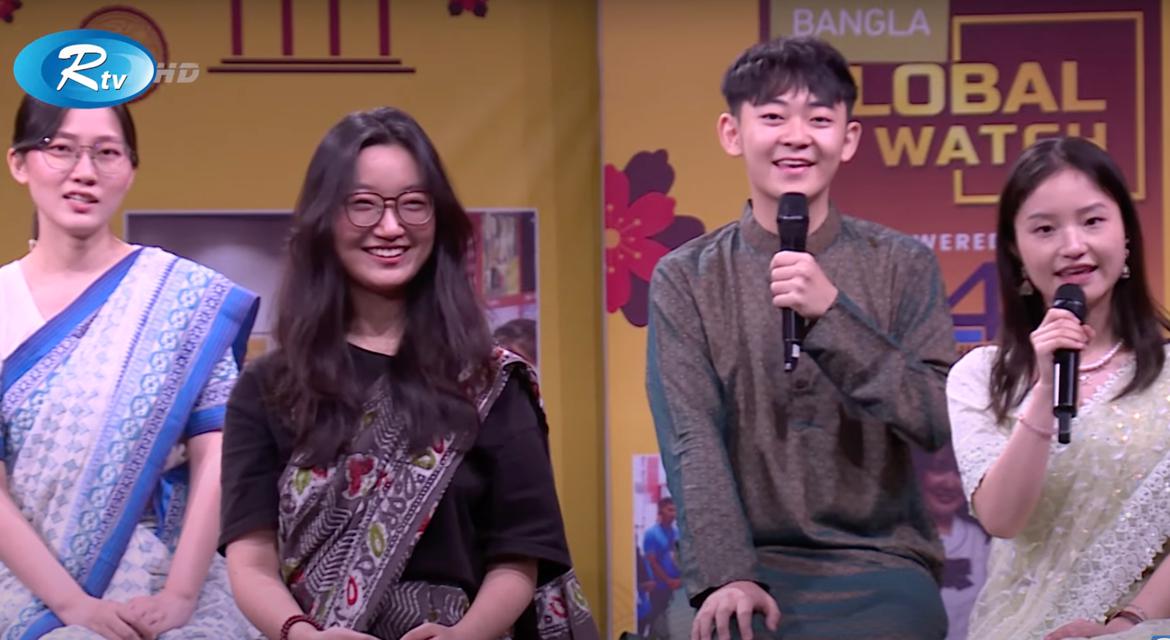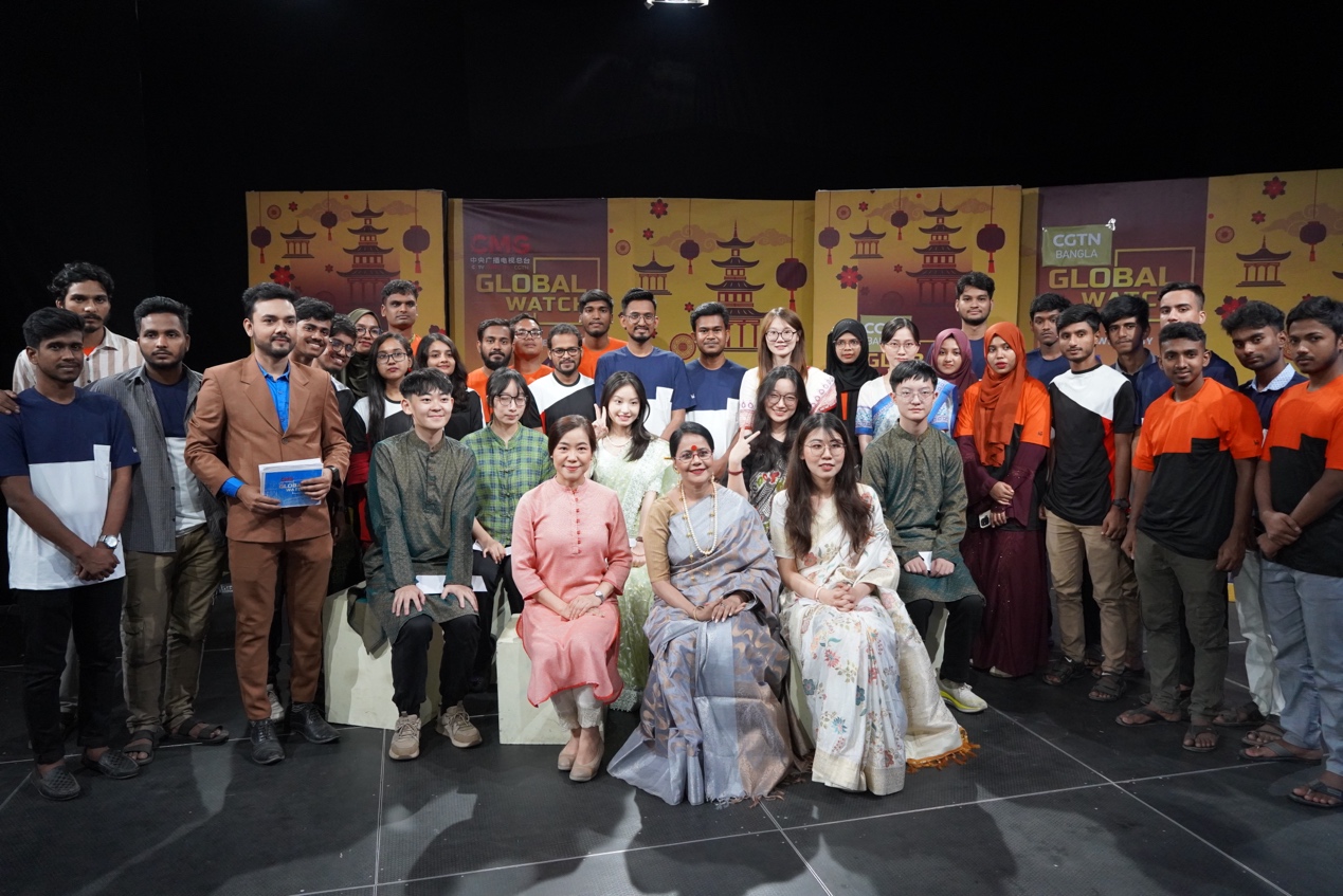 2024年5月19日,bevictor伟德官网孟加拉语系2101级赴孟加拉国达卡大学交换的同学们参加了由中国中央广播电视总台孟语部和孟加拉国RTV电视台联合策划的《全球观察》第八期节目。达卡大学现代语言公司孟加拉语系教授Rupa Chakraborty和达卡大学孔子公司经理杨慧也参与了本次节目录制。